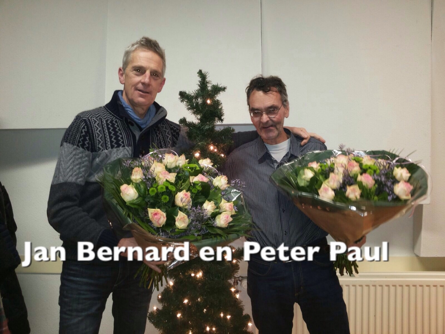 Tijdens de jaarlijkse ledenvergadering op 5 januari werden maar liefst 3 leden van het koor in het zonnetje gezet. Jan Bernard Koolen met zijn 40-jarig lidmaatschap, Peter Paul van Tuijn met zijn 12 1/2-jarig lidmaatschap en Leon Liebregts was verkozen tot vrijwilliger van het jaar. Heren, proficiat!