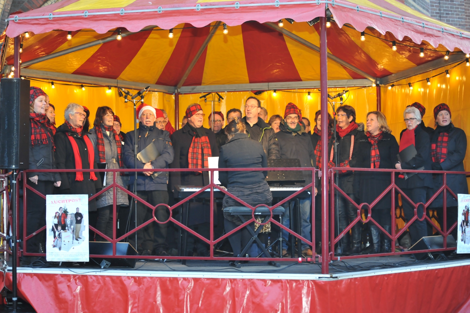 Ondanks het koude weer waren er veel mensen op het festijn afgekomen. Het gemengde koor La Jeunesse uit Kaatsheuvel gaf een prachtig optreden weg en bracht iedereen gelijk in kerstsfeer. Het koor zong onder andere het welbekende 'De herdertjes lagen bij nachte', 'O holy night', maar ook een Franstalig kerstlied en wat minder bekende kerstliederen. Een afwisselend repertoire, waarvoor de mensen graag even bleven staan luisteren.