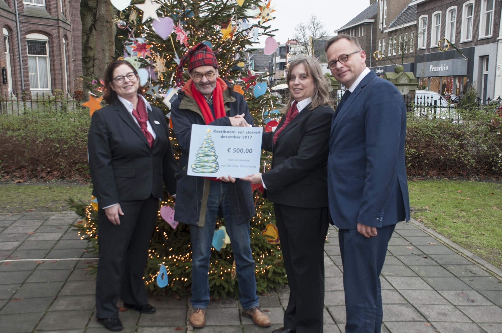 Tevens na het concert hebben Yvonne van Gorp, Bea Doevendans en Robin de Bruin namens het team van Van Gorp uitvaartdiensten een mooie check overhandigd aan La Jeunesse.