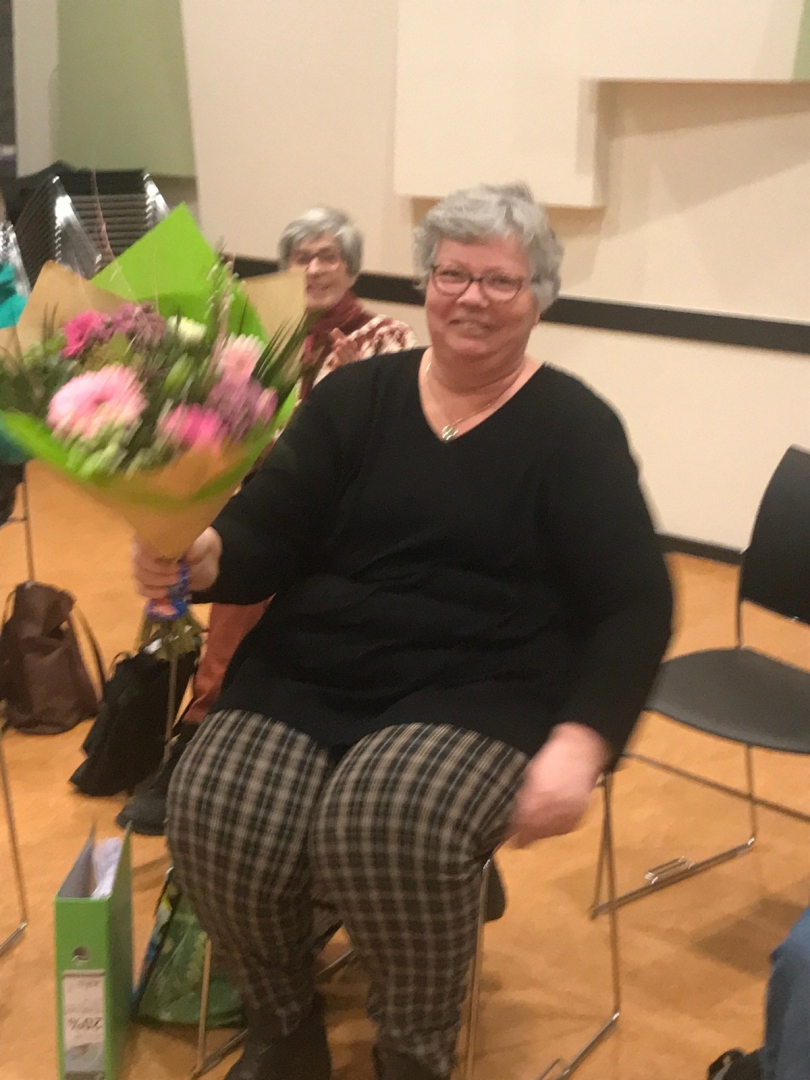Tijdens een druk bezochte ledenvergadering van koor La Jeunesse, die door Corona, natuurlijk enkele malen was uitgesteld, werden weer enkele leden in het zonnetje gezet voor hun jarenlange betrokkenheid en lidmaatschap middels een mooie bos bloemen.